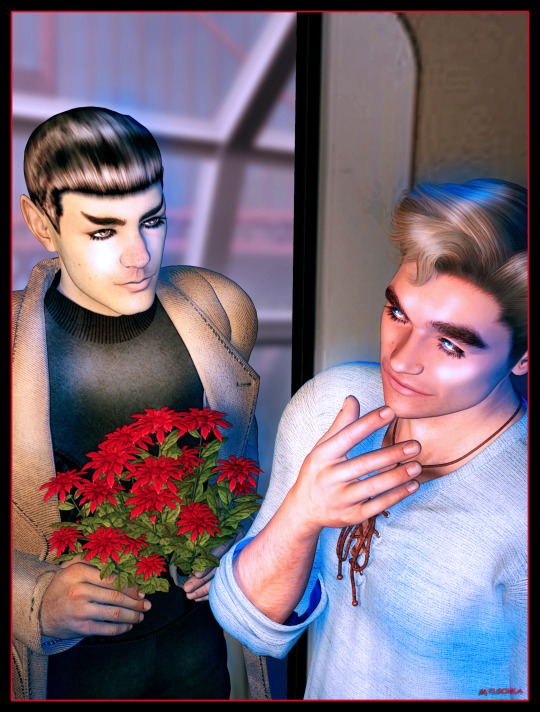 “Spock, hi.” Jim came forward. “Come in.” He moistened his lips. “Were, um, were those for me?”