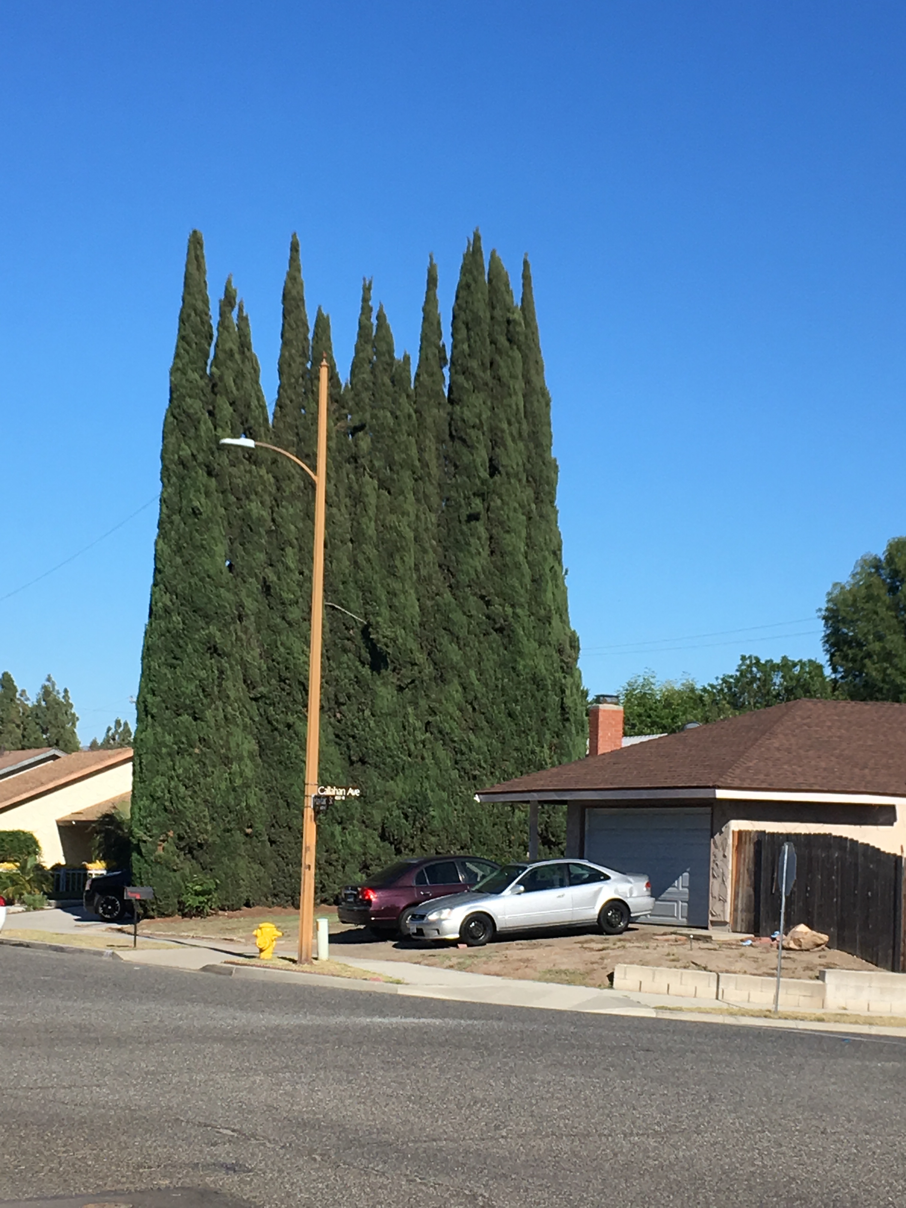 I hate those trees. Ugly. Not to be confused with a Monterey Cypress (see below). They are all over here and I hate them. They are hideous and filled with vermin. Years ago my friend’s dad, alive back then, looked at the ones in his backyard (he was the original owner of the house) and he said, what asshole planted those? He was the asshole of course. Quite the character he was. He sort of looked like a cross between Tom Bosley and Paul Sorvino. Anyway, he’s long gone now but he’s one of those characters in life that you never ever forget. It’s amazing how people come and go in our lives, either because they pass on or because our circumstances in life change. Anyway, M hates olives and our friend’s dad, as a good Italian, loved them and he would chase M around with jars of olives, going but you have to try these. M would try them, of course, and go, nope, still gross. HA HA
