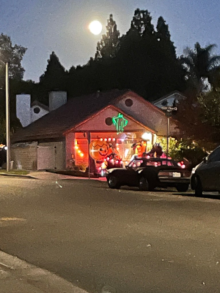 Thought you might want to see some pictures of the neighbor’s decorations. Cool huh? They have creepy sound too. As a child I would have been terrified of that house HAHA