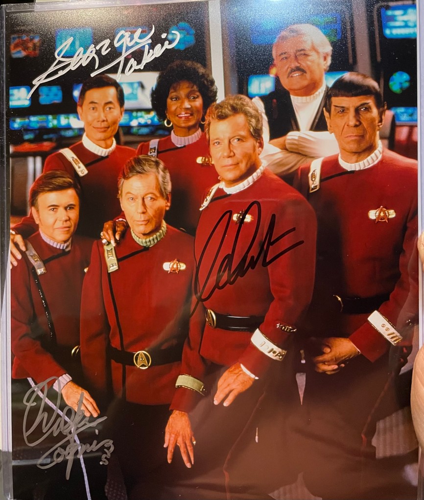 A while back I spent an insane amount of money to get a picture of the TOS cast (from the movies) from Galaxy Con with three signatures of the remaining four Trek cast members (Walter, George and Bill).