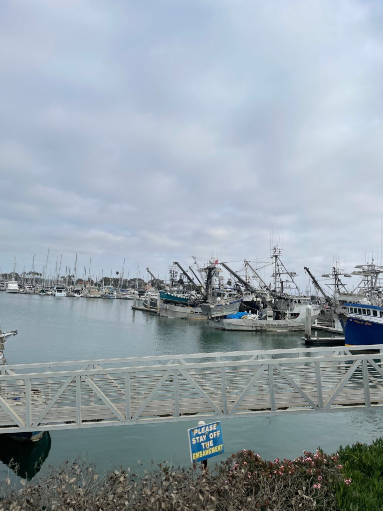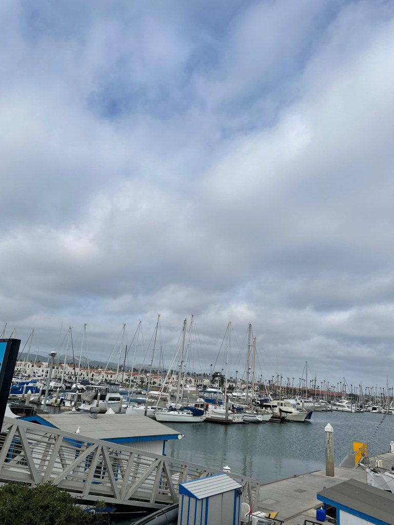My Salmon, note the fancy plating! LOLA cute machine with a $500 win for the sister, even the Panda’s are excited!Heading home, a gloomy day in Ventura HarborMore Ventura Harbor